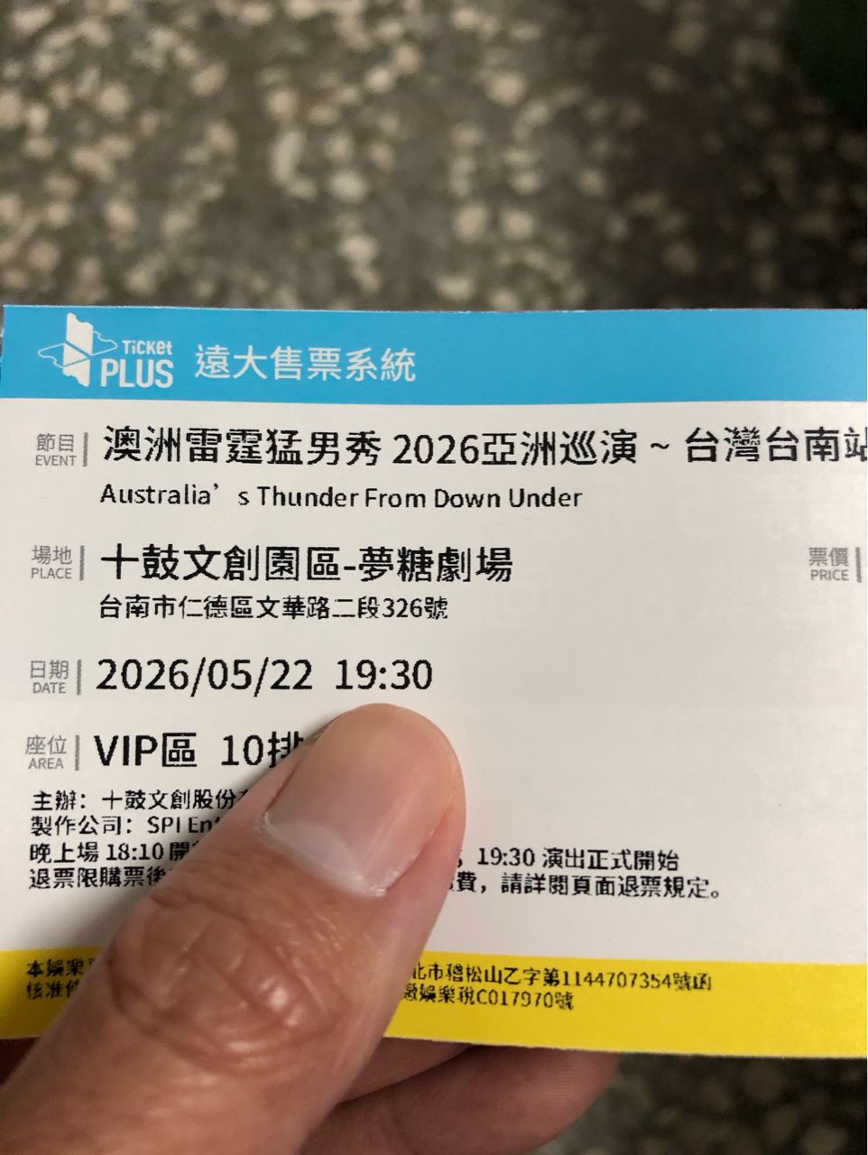 交易物品簡介或網址:澳洲雷霆猛男秀 2026亞洲巡演 ~ 台灣台南站門票