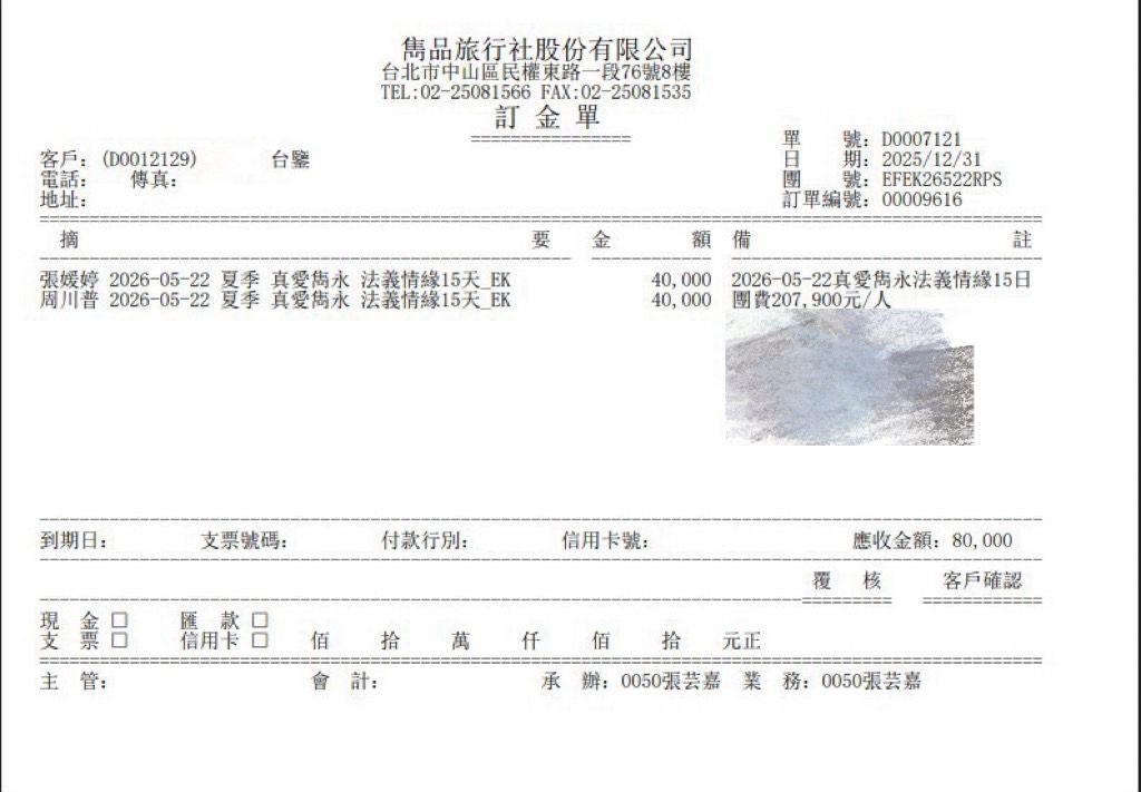 7.我們的訂金單: