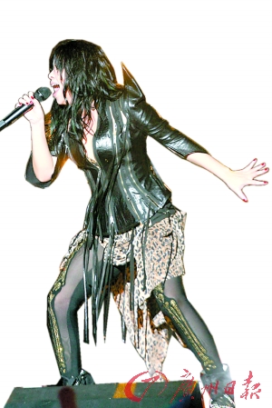 張惠妹,來到佛山只更換了三套服裝,且多以黑、灰這類搖滾顏色為主。阿妹首次以卑南