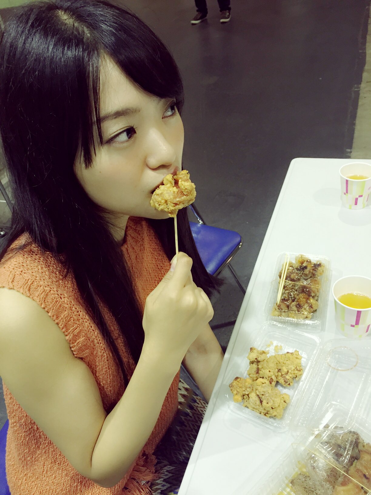 默默的咀嚼著的里英醬,正在消化握手會會場裡的炸機塊!