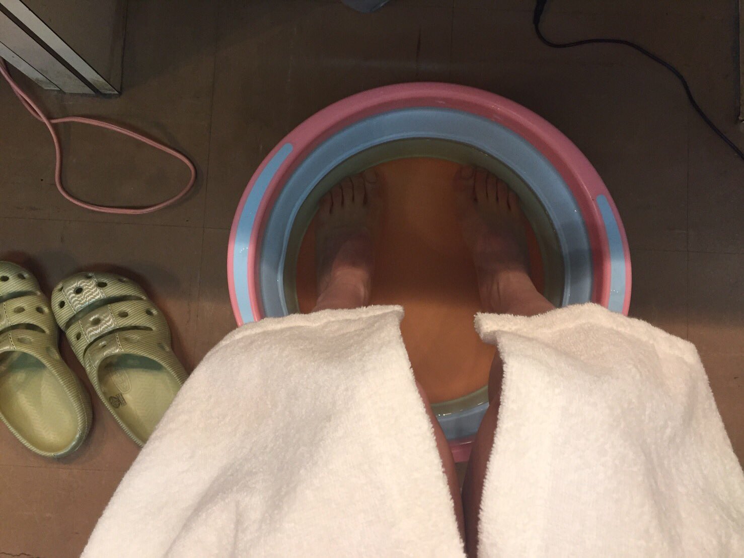 舞台劇第三天第四場公演。 每次公演開始前我都會泡個腳!
