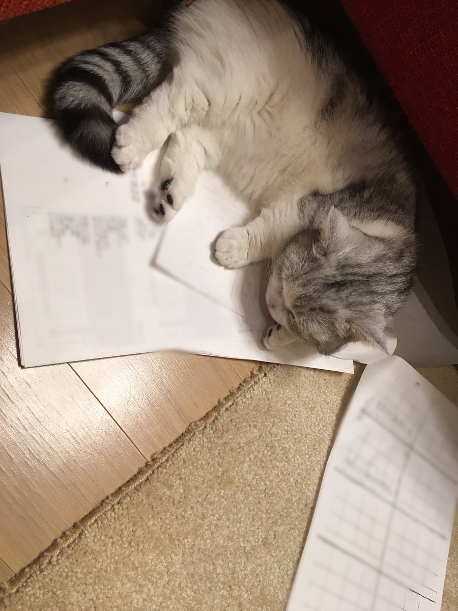 結果他就在資料上睡著了。 好可愛。 但是這樣真讓人為難阿。