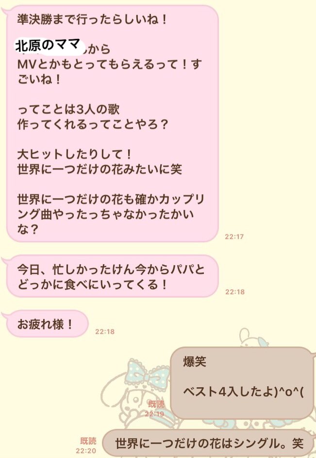 因為三空群聊裡有稱讚到她,我很開心就截了LINE的畫面給她看,