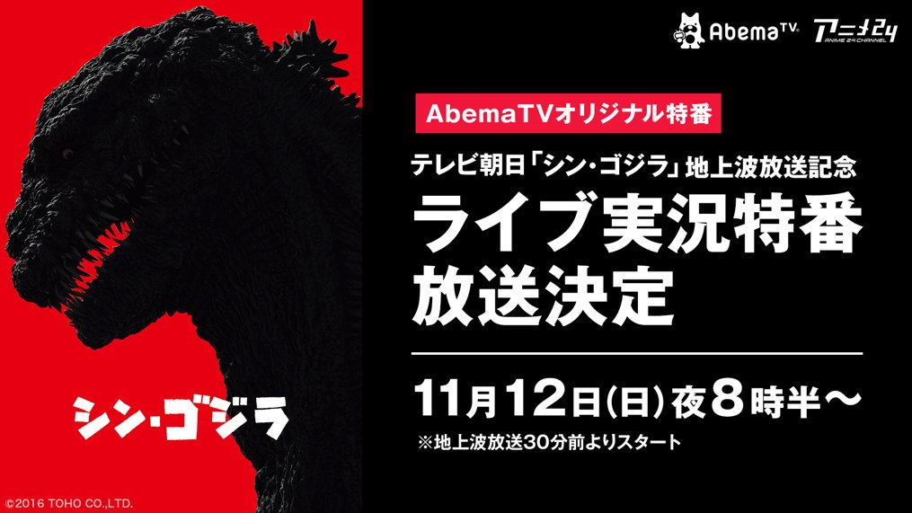 AbemaTV:馬上『新哥吉拉』地上波初次播出紀念LIVE實況特別節目就要開始了