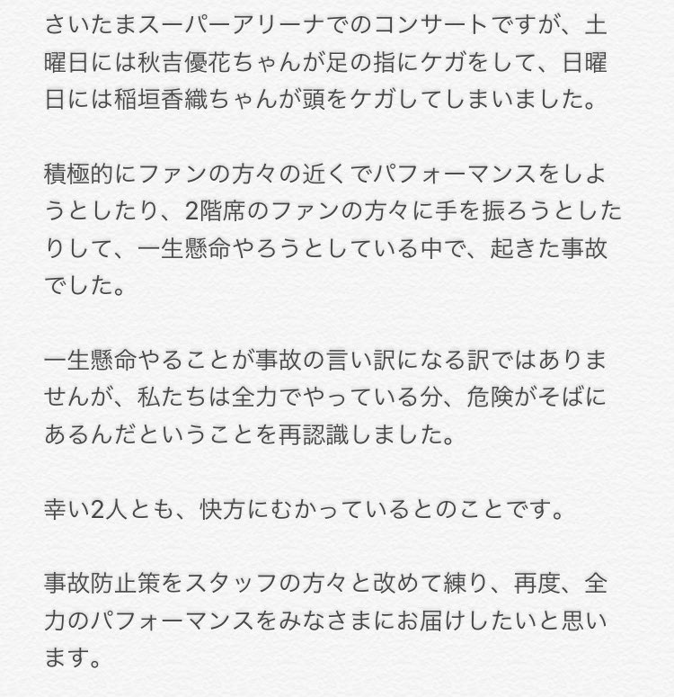 埼玉超級體育館的演唱會、星期六時秋吉優花醬腳趾受了傷、