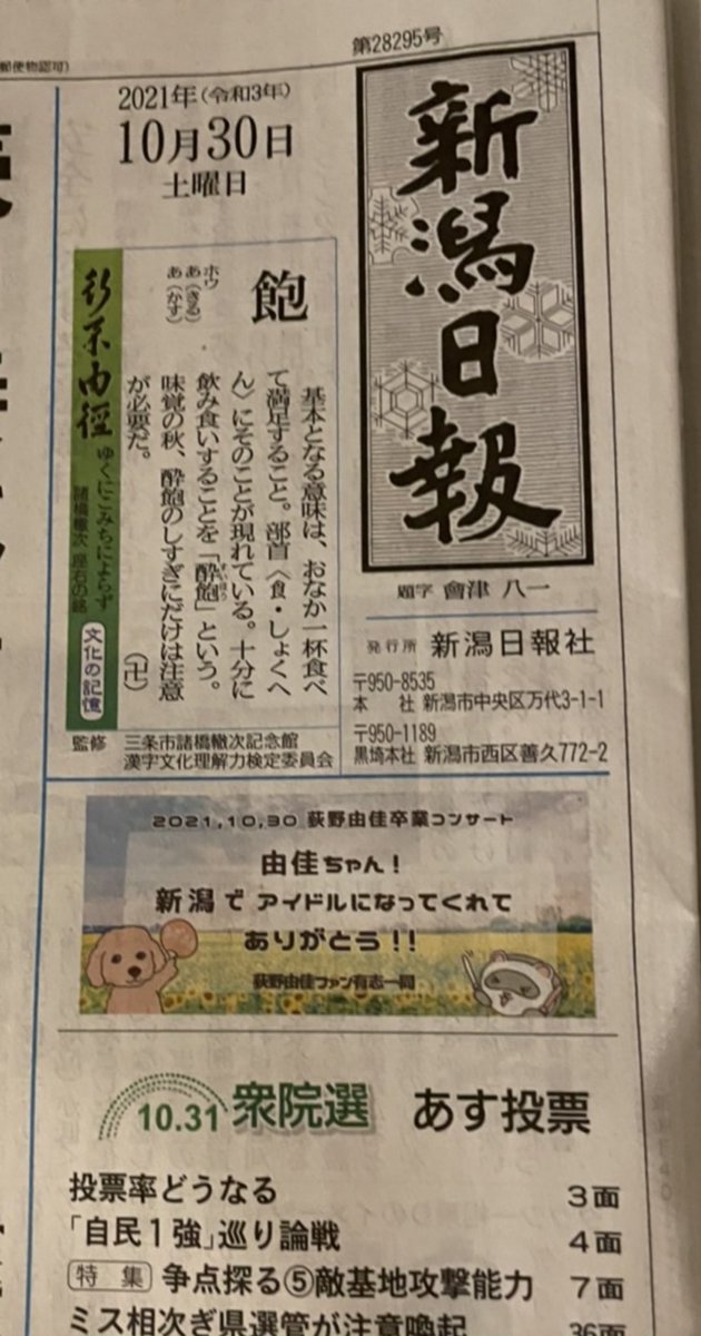 【本日30日新潟版】