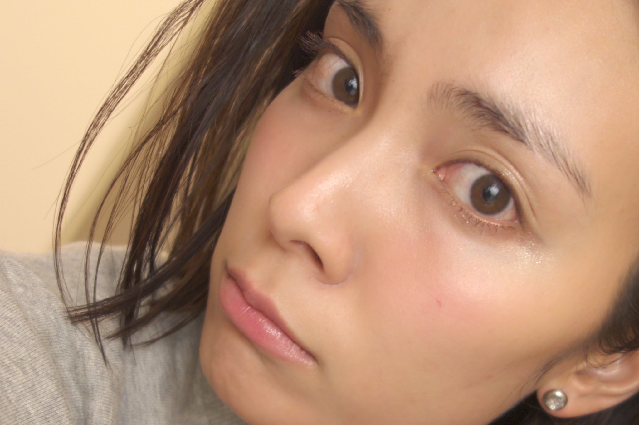 用了牛奶粉的唇膏跟酒紅色的睫毛膏。