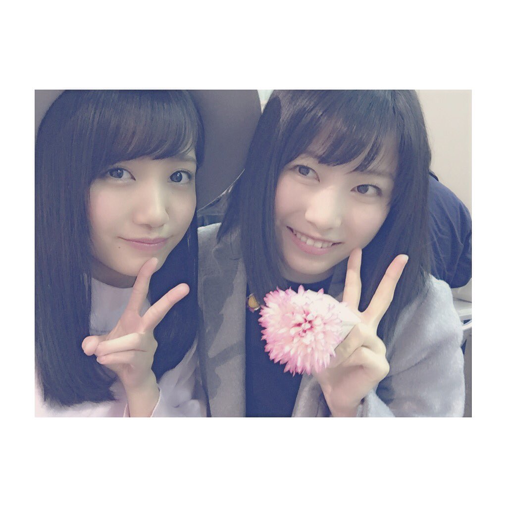 跟橫山桑說了一聲"來拍合照吧",結果她說"那我要拿花",就拿花拍了一張 笑