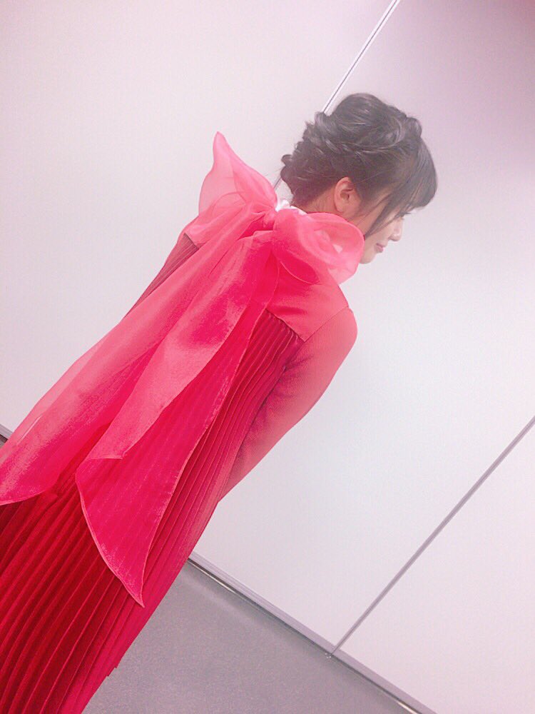 代表NGT色彩的鮮紅色,無限展開的長裙、連背後都是很可愛的蝴蝶結...