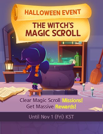 updated! Halloween is here in SSB! Open the magic scroll! Clear all missions Trick or Treat! New Halloween Limited Edition Theme! Give you 1 LE card for Free! Yay!
