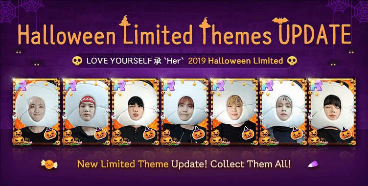 [公告] * 更新萬聖節活動! * 追加5★新款卡片! * 帳號最高等級確定開放至LV.60 ! Trick or Treat~ 經紀人們... 和勇敢的防彈少年團一起.. 來挑戰陰森森的廢校吧? [詳細公告]