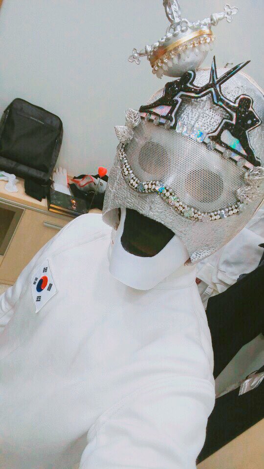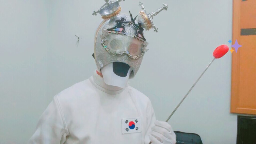 嚇... 覺得這樣就能刺中你 劍擊男竟然就是Jung Kook!! 真的完全不知 道呢! 完全被騙了!! 從頭到腳也緊緊擋住, 非常Jung Kook (哈哈)的劍擊男真的是hit是 hit