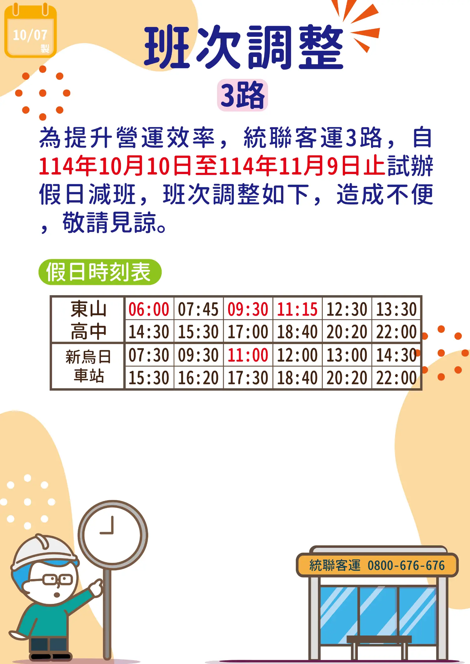 試辦減班,例假日由雙向20班次減為雙向12班次