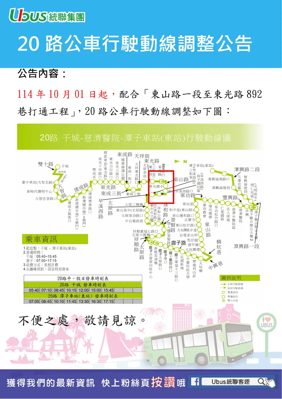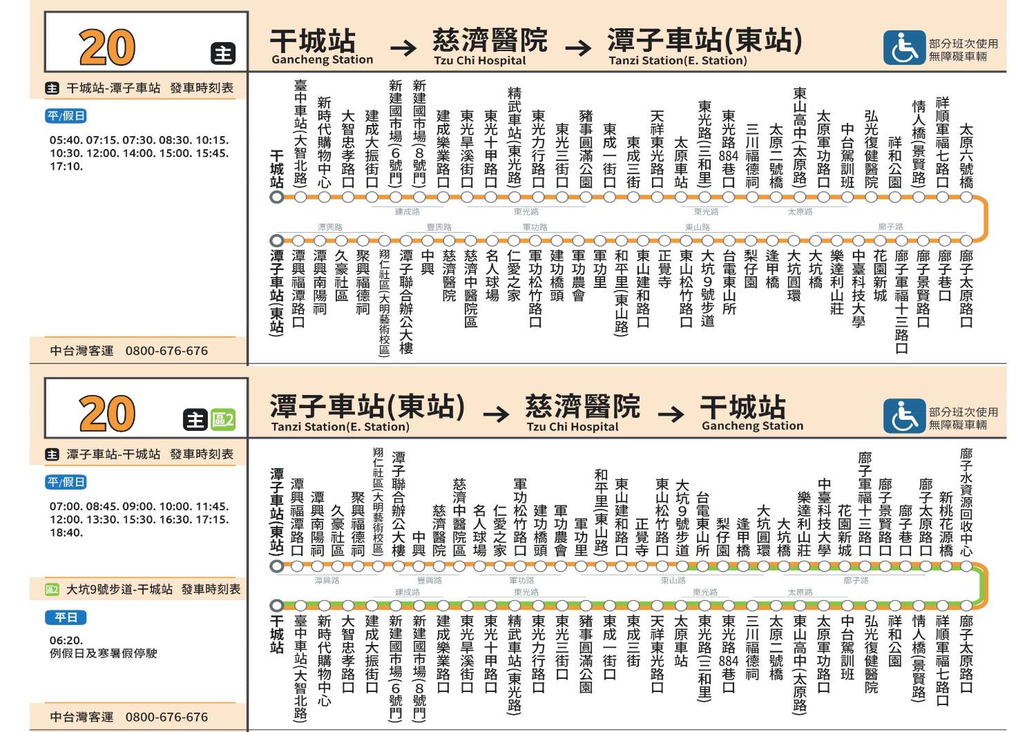 營運路線 臺中市公車 20 干城站-潭子車站
