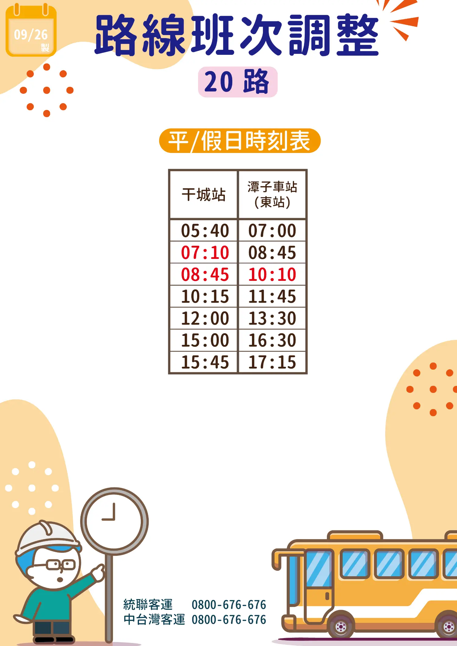 每日 干城站 07:15/08:30 班次調整為 07:10/08:45 發車