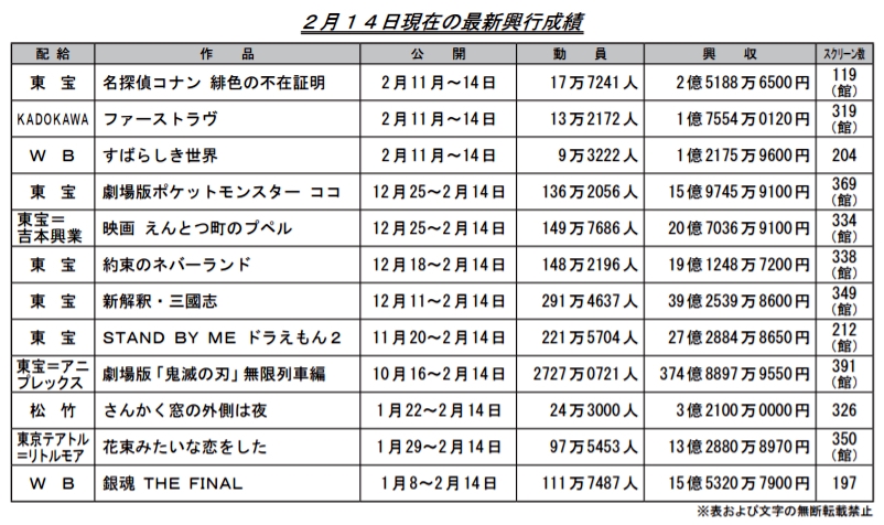 標題[閒聊] 上週日本電影票房(鬼374+柯南2.5銀魂15.5