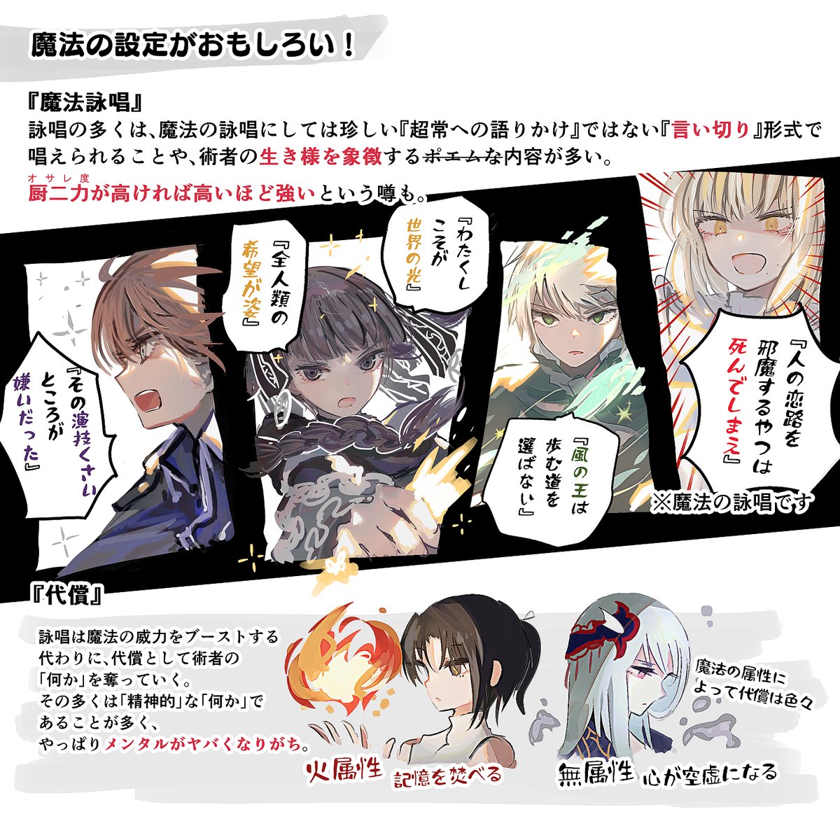 根據魔法的屬性有著不同的代價