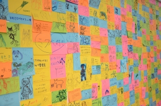 粉絲留言的牆,大量的留言顯示大家對初音未來的喜愛與支持,究竟這個世界知名的虛擬