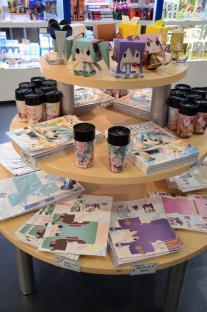 展覽的商店區也販售許多 Vocaloid 的商品,像是紙模型、文件夾、杯子、短褂(一種傳
