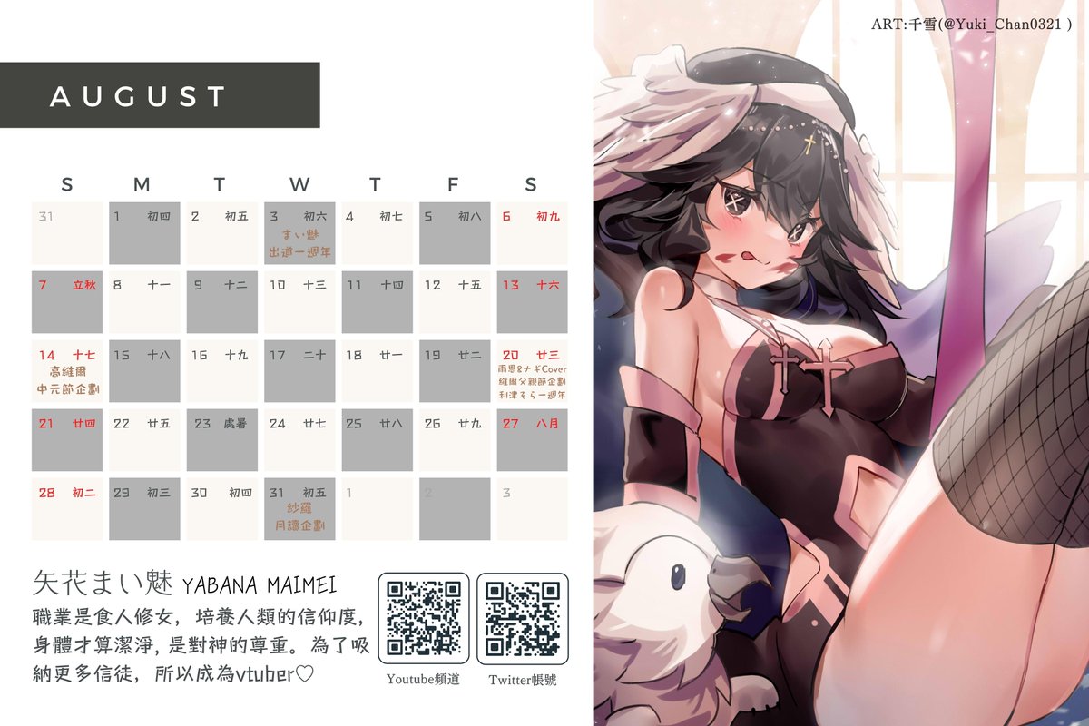 輪到修女的8月份水日比家族月曆了!