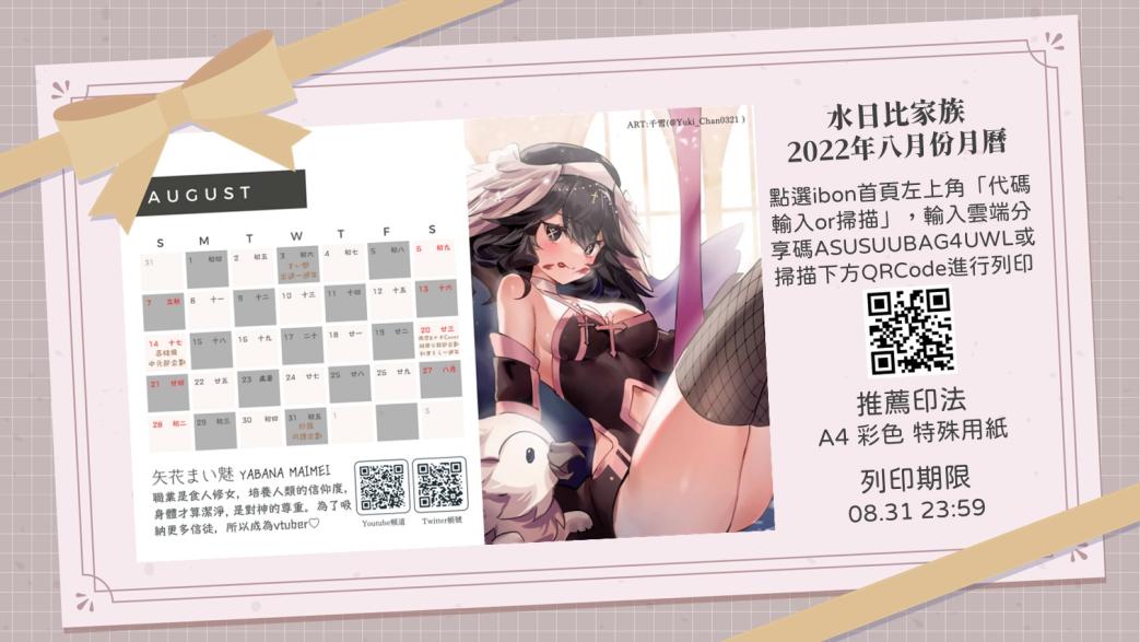 標題[Vtub] 水日比家族2022八月月曆-矢花まい魅