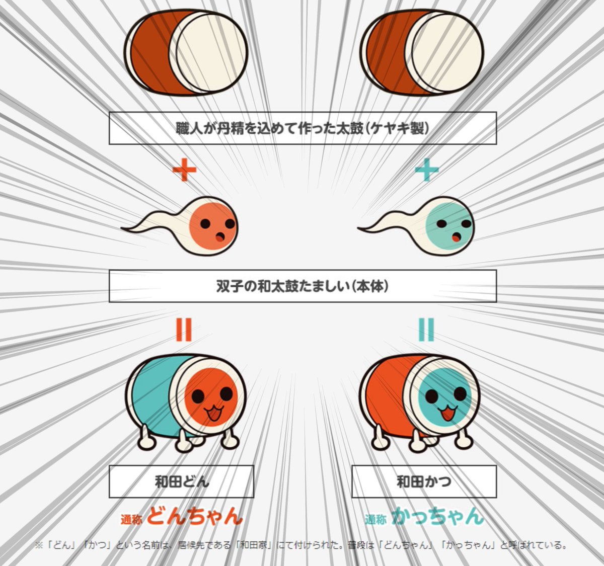 匠人嘔心瀝血做成的太鼓(櫸木製作)+雙子的和太鼓魂(本體)=和田咚與和田喀誕生了(