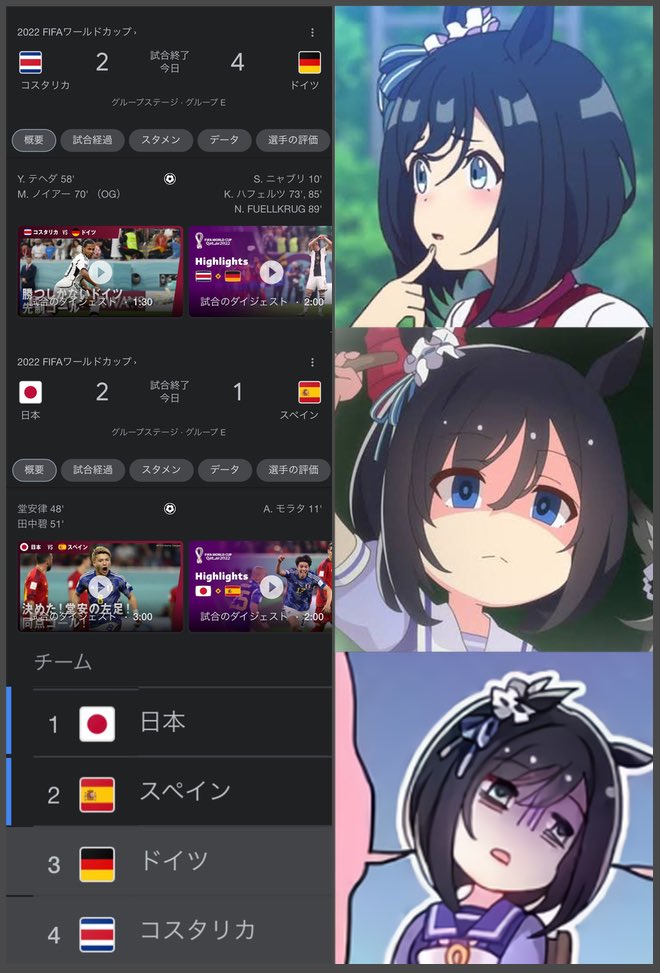 : → wuwuandy: 兩邊各剩一場,德國贏哥斯的話,日本至少要跟西班牙平手 11/28 15:50