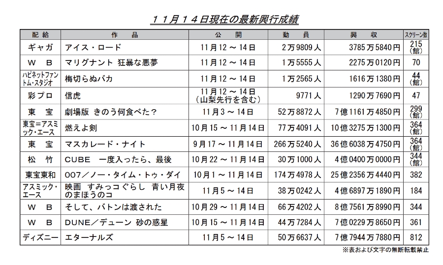 ║2║1║エターナルズ(永恆族) ║2║ 1.5億║ 7.7億║