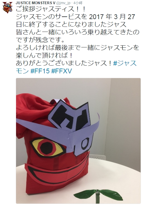 而在日本營運四個月後,SQUARE ENIX 於稍早正式在官方推特宣布遊戲即將停止營運