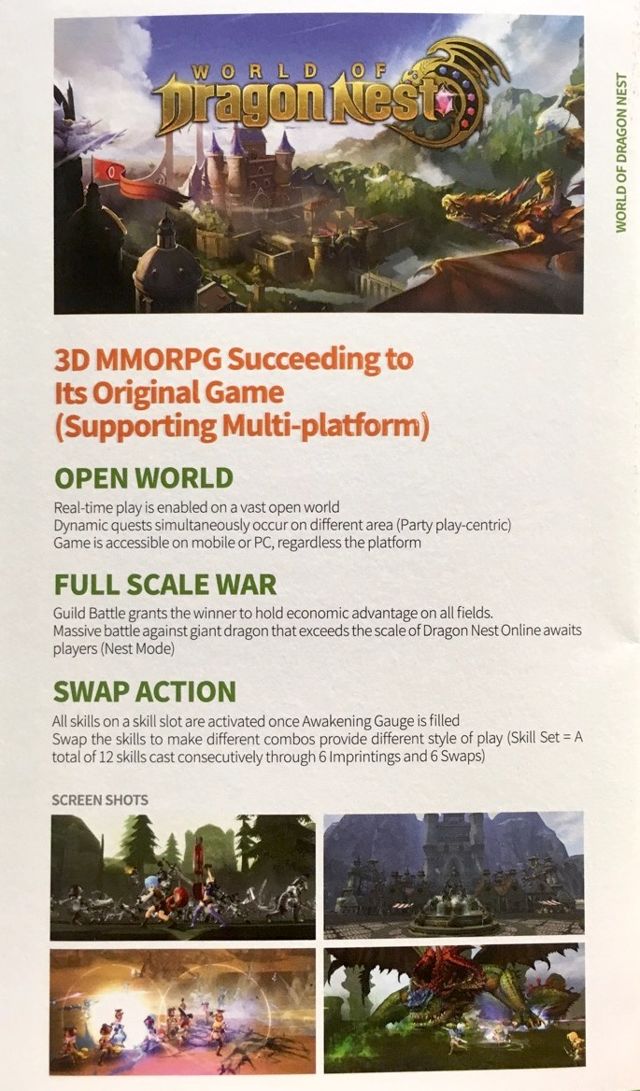 推出的 MMORPG 新作《龍之谷世界(暫譯,遊戲原名:World of Dragon Nest)》,隨後