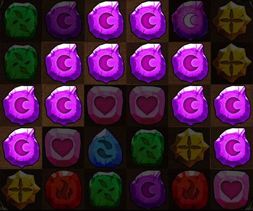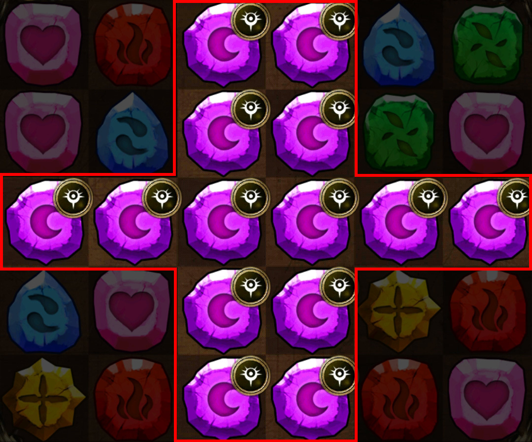 為「強力爆裂光線」,將 14 個固定位置的符石轉化為水神族符石。