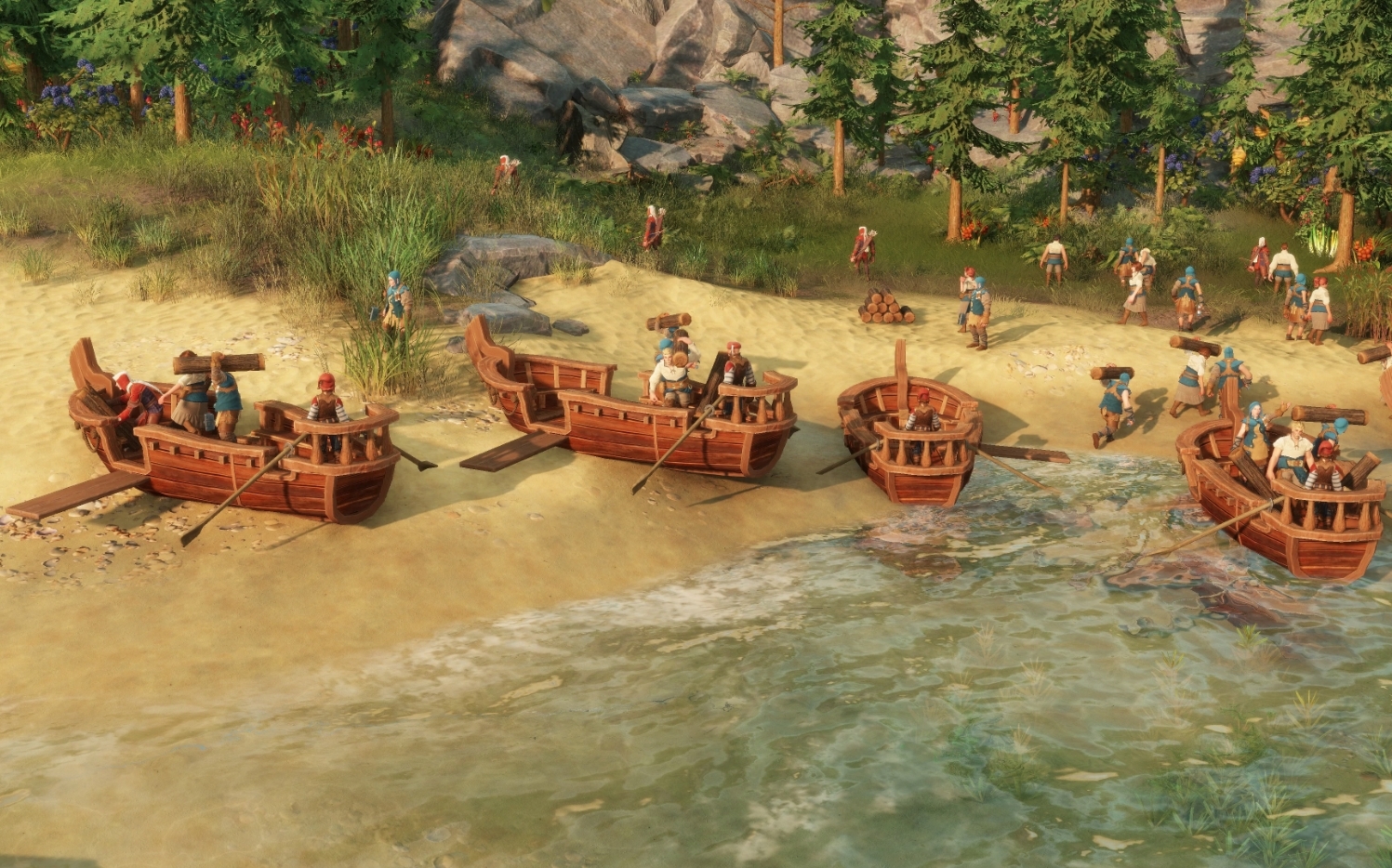 人小屋與漁人小屋,以及能取得木材的伐木小屋。每種資源都有各自分布的區域,建設時