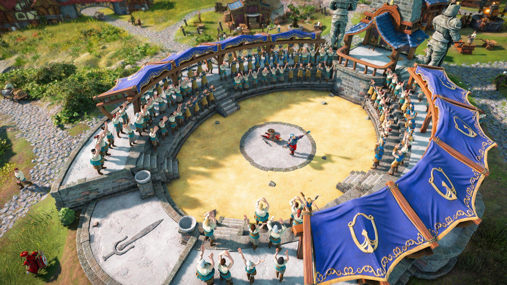 傳、招攬敵我雙方的工人前往觀戰。只要在比武中成功擊敗敵方代表,就能動搖敵方工人
