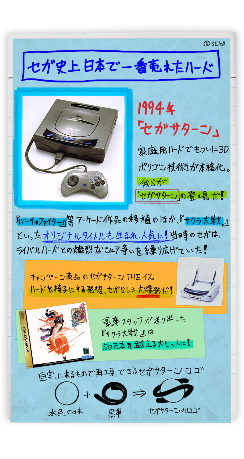 SG-1000IV)」,1988 年推出 16 位元主機「Mega Drive」,1994 年推出 32 位元主機