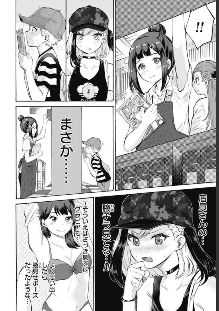 他在看……店員的腋下走光……!!