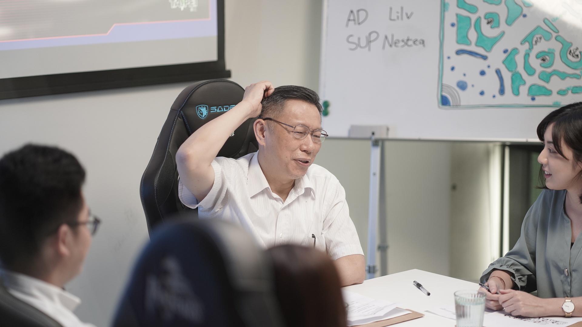 並肩作戰,「學姊」黃瀞瑩也在影片中客串一角。拍攝過程中,柯市長也對電競選手的瞬