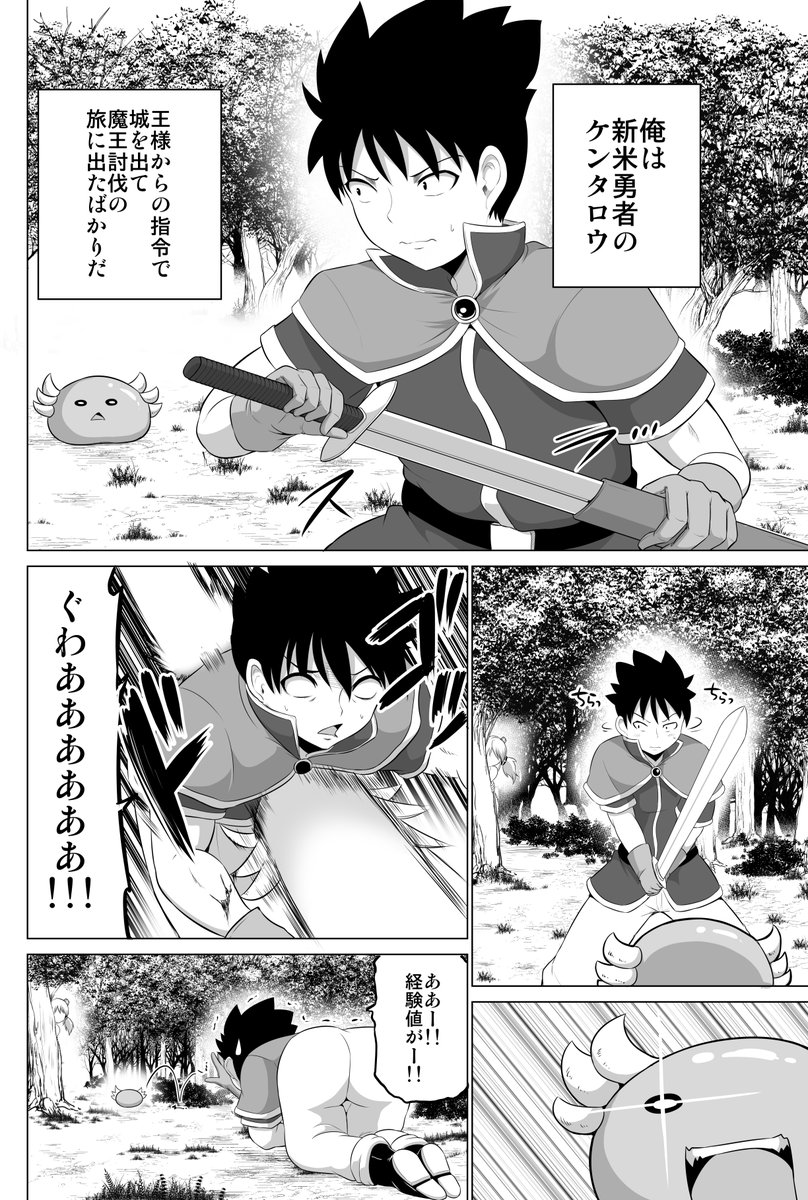 新手勇者:健太郎 正要展開魔王討伐的旅程 想打史萊姆練等卻因為集中不足被打趴