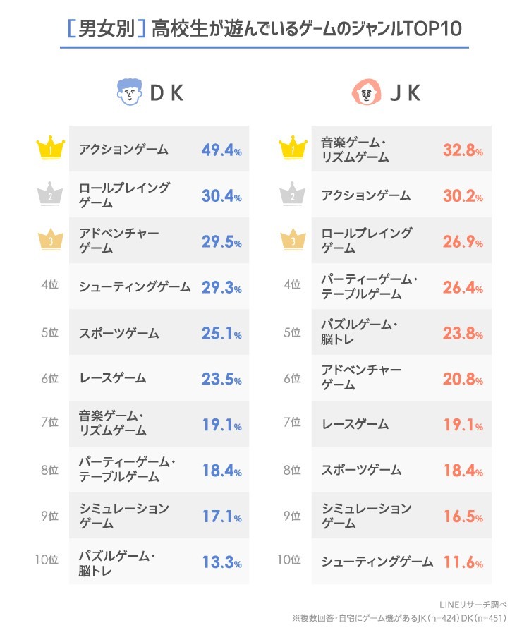 LINE 研究中心」於近日公開針對日本高中生主機遊戲環