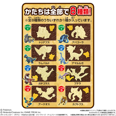 「キャラパキ ポケモン発掘チョコ」では、ガチゴラス、プテラ、アマルルガ、カブ