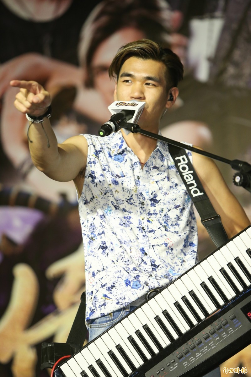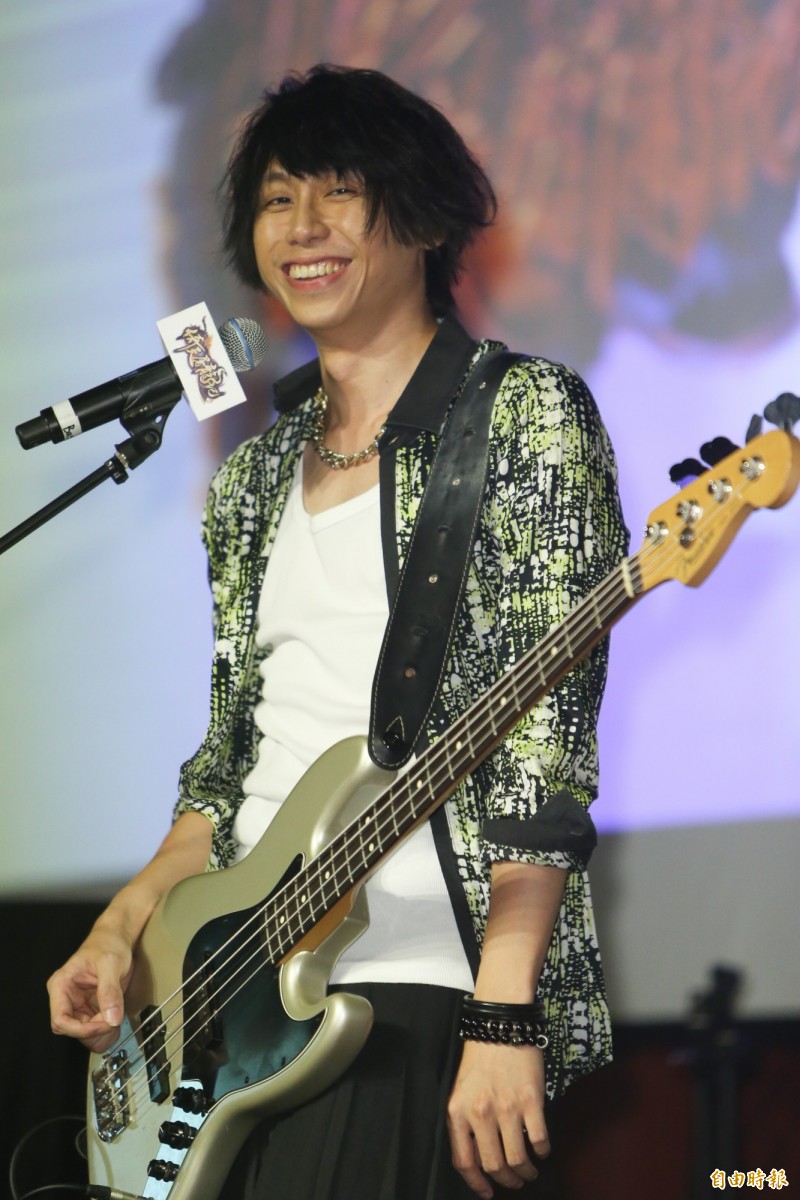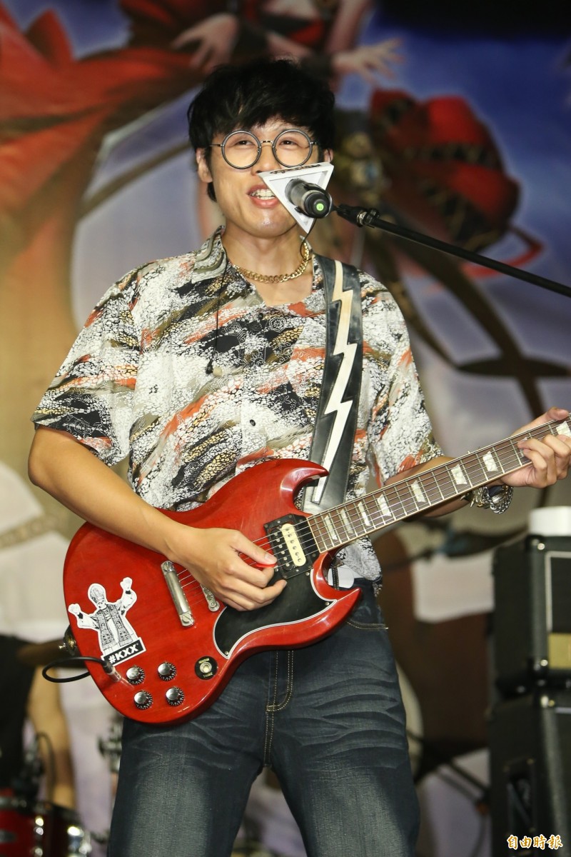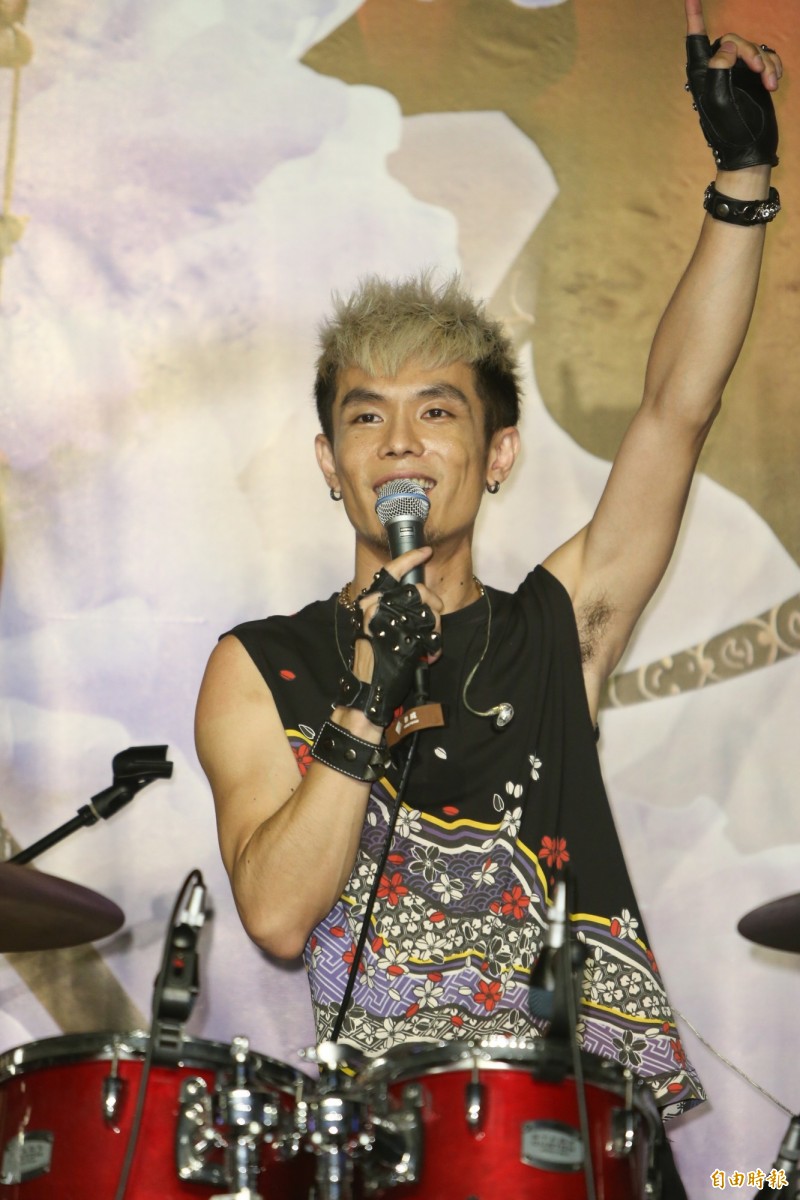 阿璞。(記者陳逸寬攝) 他們難得以古裝造型亮相,貝斯手霸天透露在試裝時口渴,穿著古裝就外出買咖啡,行徑 引來路人側目,而一年一度的「八三夭」生日趴,今年8月27日在華山Legacy 登場,團長 打趣:「我們這次沒有打算邀請嘉賓,我們怕他們比我們紅。」