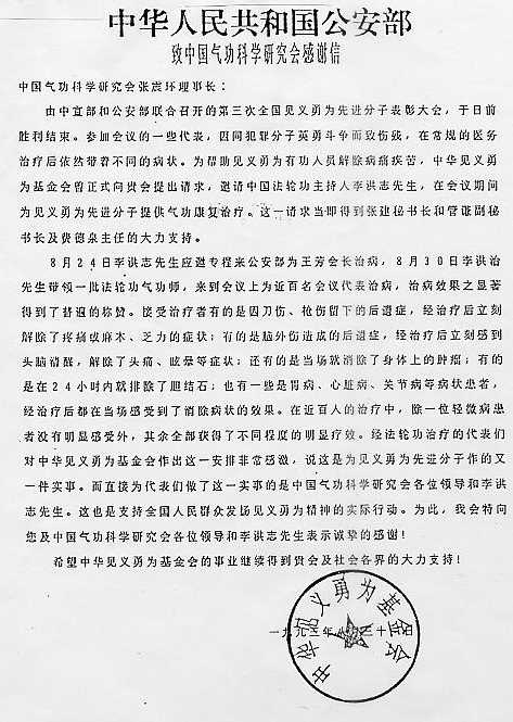 以及中國公安部所屬的中華見義勇為基金會所發出的感謝信來看