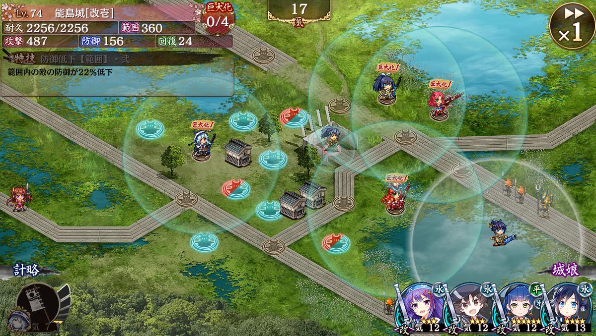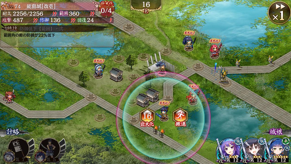 範囲内の城娘の防御が20低下