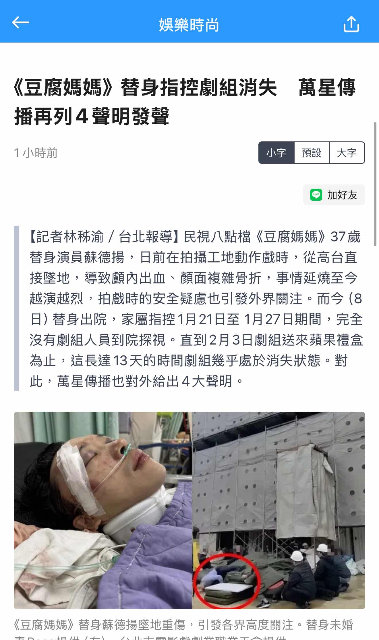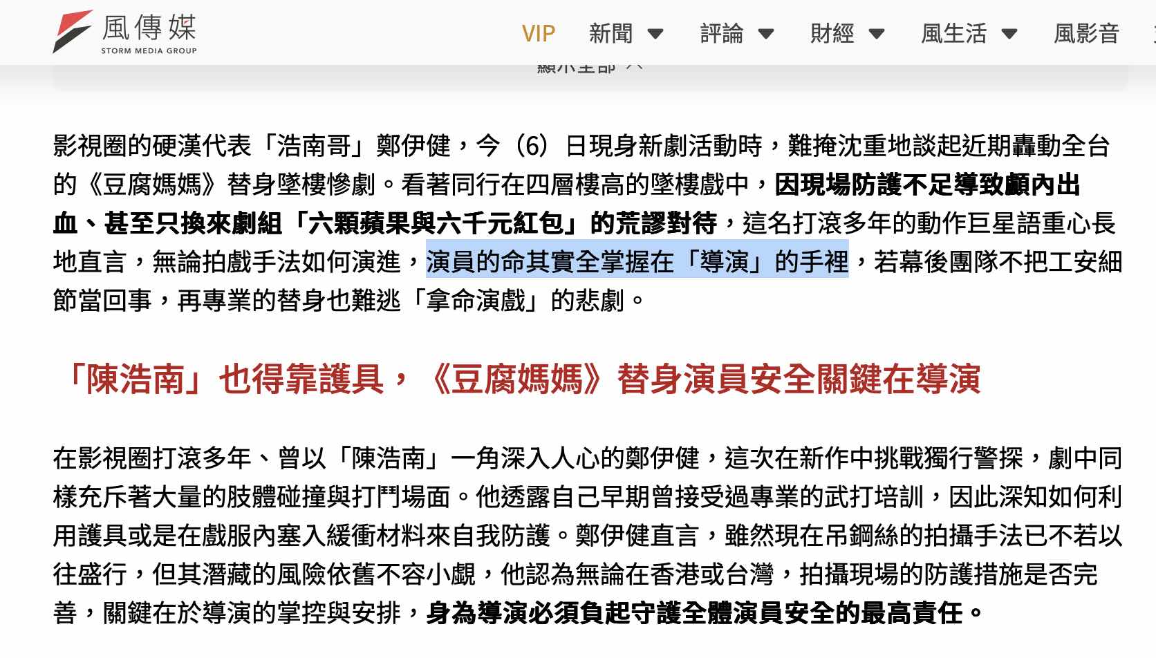 → Vbee : 力盛讚演員敬業、入戲來轉移劇組沒做好安全措施保護 02/06 13:27