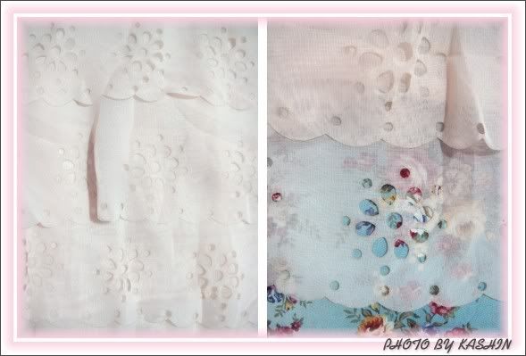 左:雪紡和雕花近拍 右:蕾絲近拍