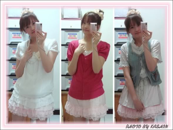 我昨天穿公主袖棉 T + 蝴蝶結馬甲 + 荷葉邊澎澎裙