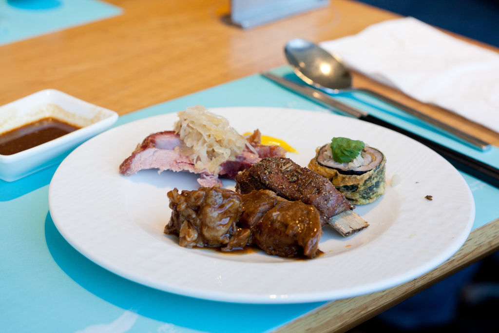 熟食區:魚類、燉牛肉、烤羊肉、烤嫩雞、德國豬腳及炒蔬菜等等一應俱全。