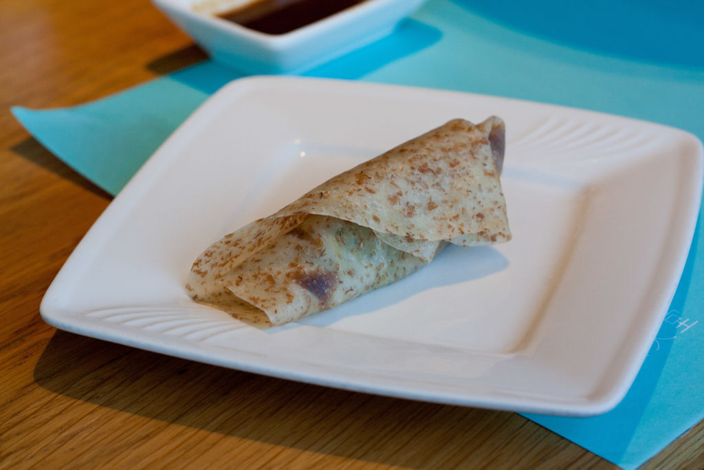 用全麥餅皮的烤鴨夾餅,說真的,餅皮比鴨肉好吃。