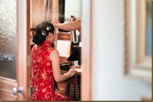 新郎抵達時也先到裡頭來梳妝。