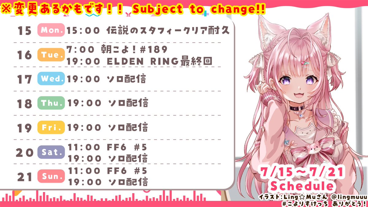 標題[情報] 博衣こより 本週行程 (07/15~07/21)