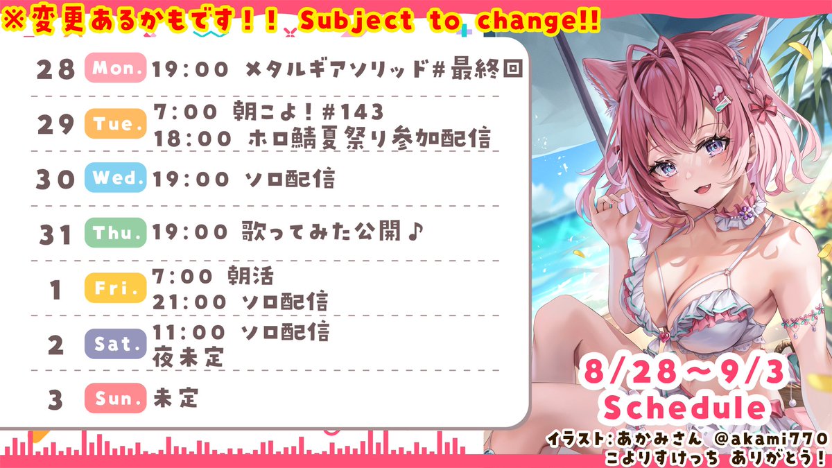 標題[情報] 博衣こより 本週行程 (08/28~09/03)